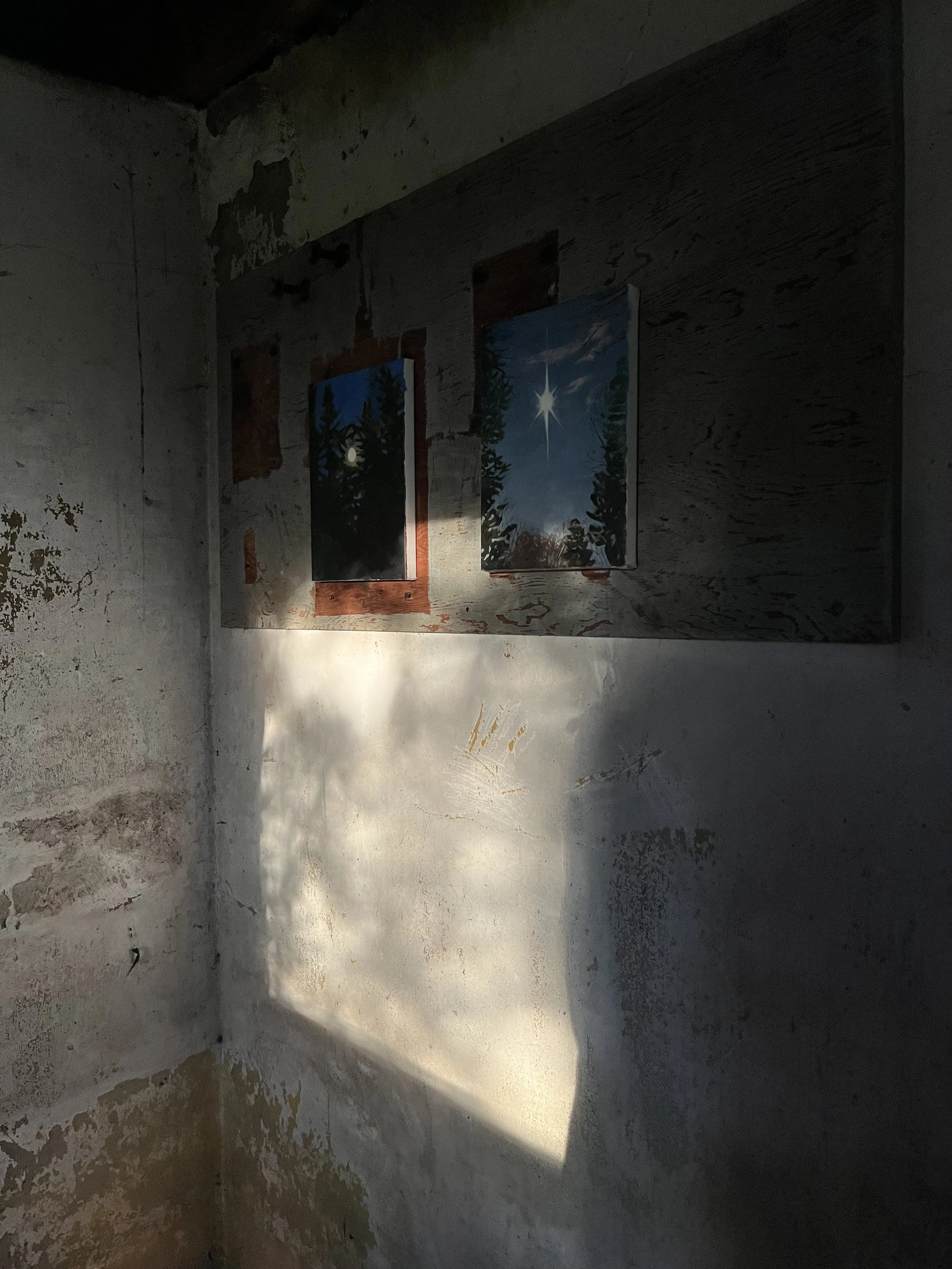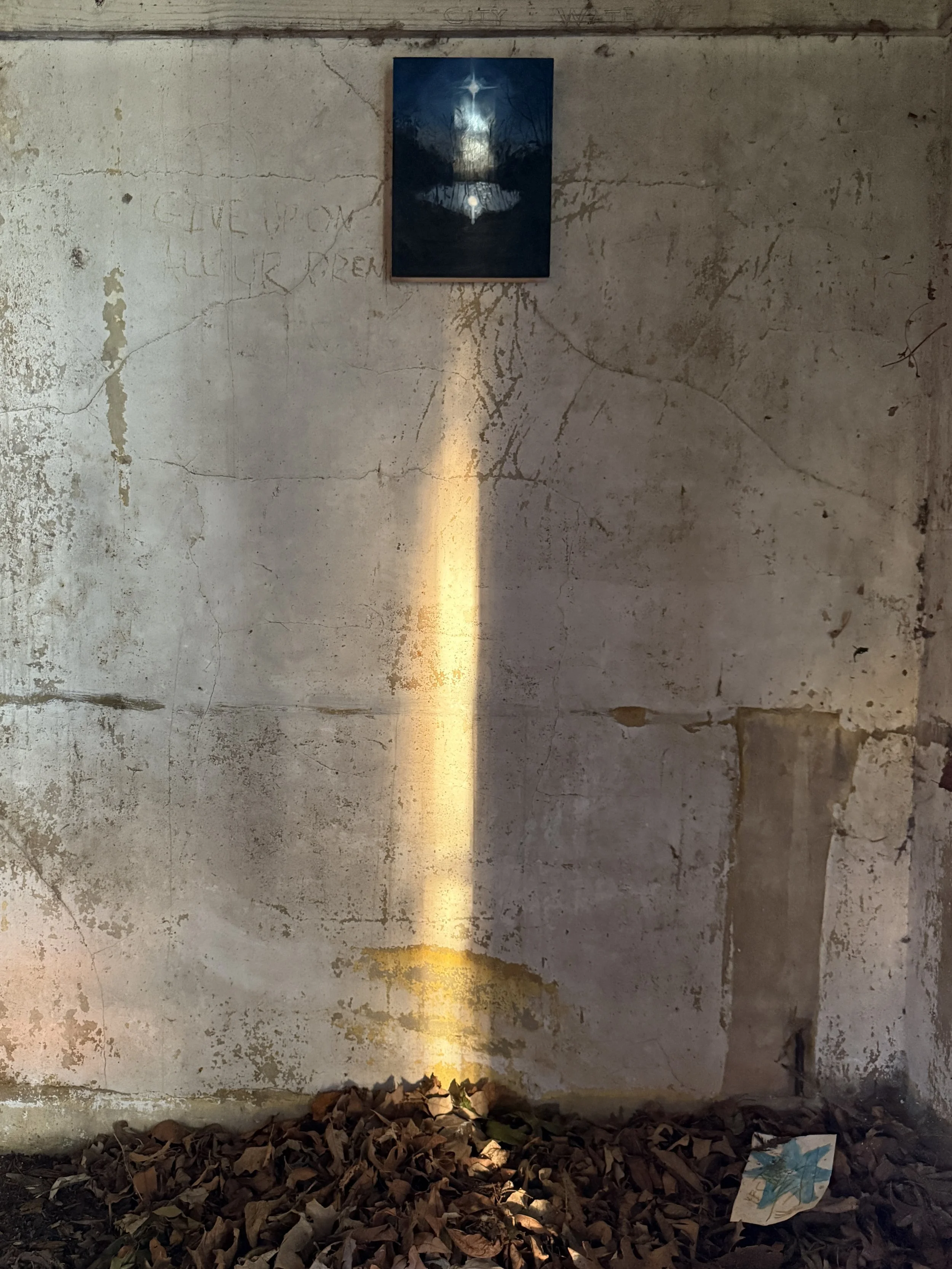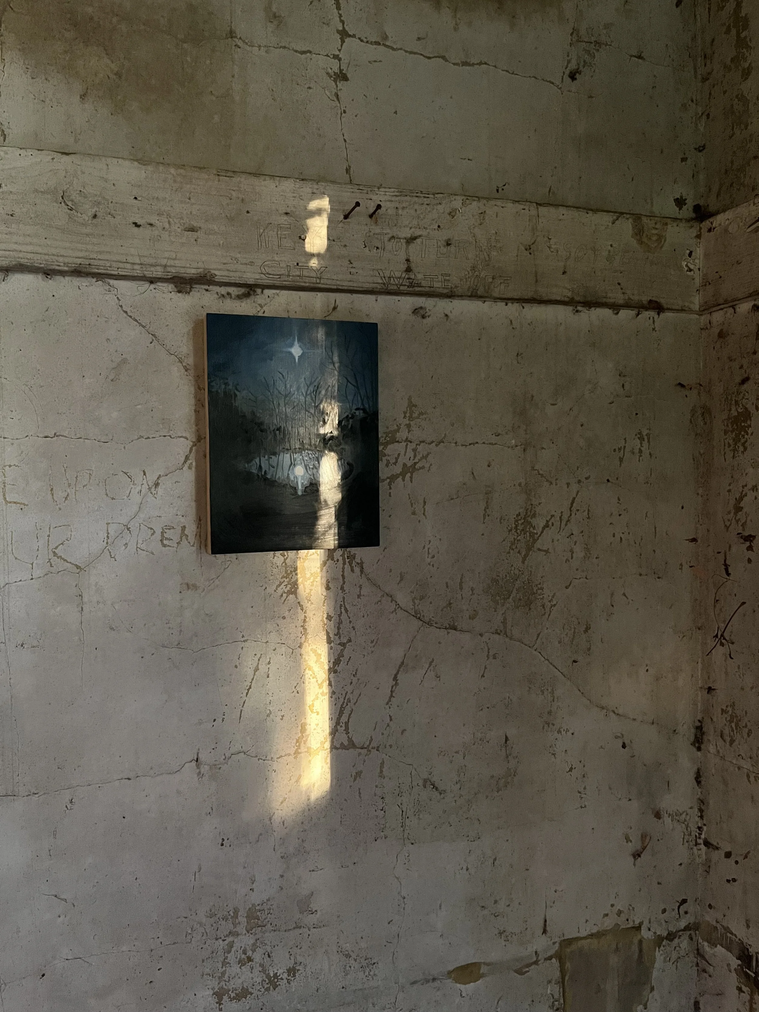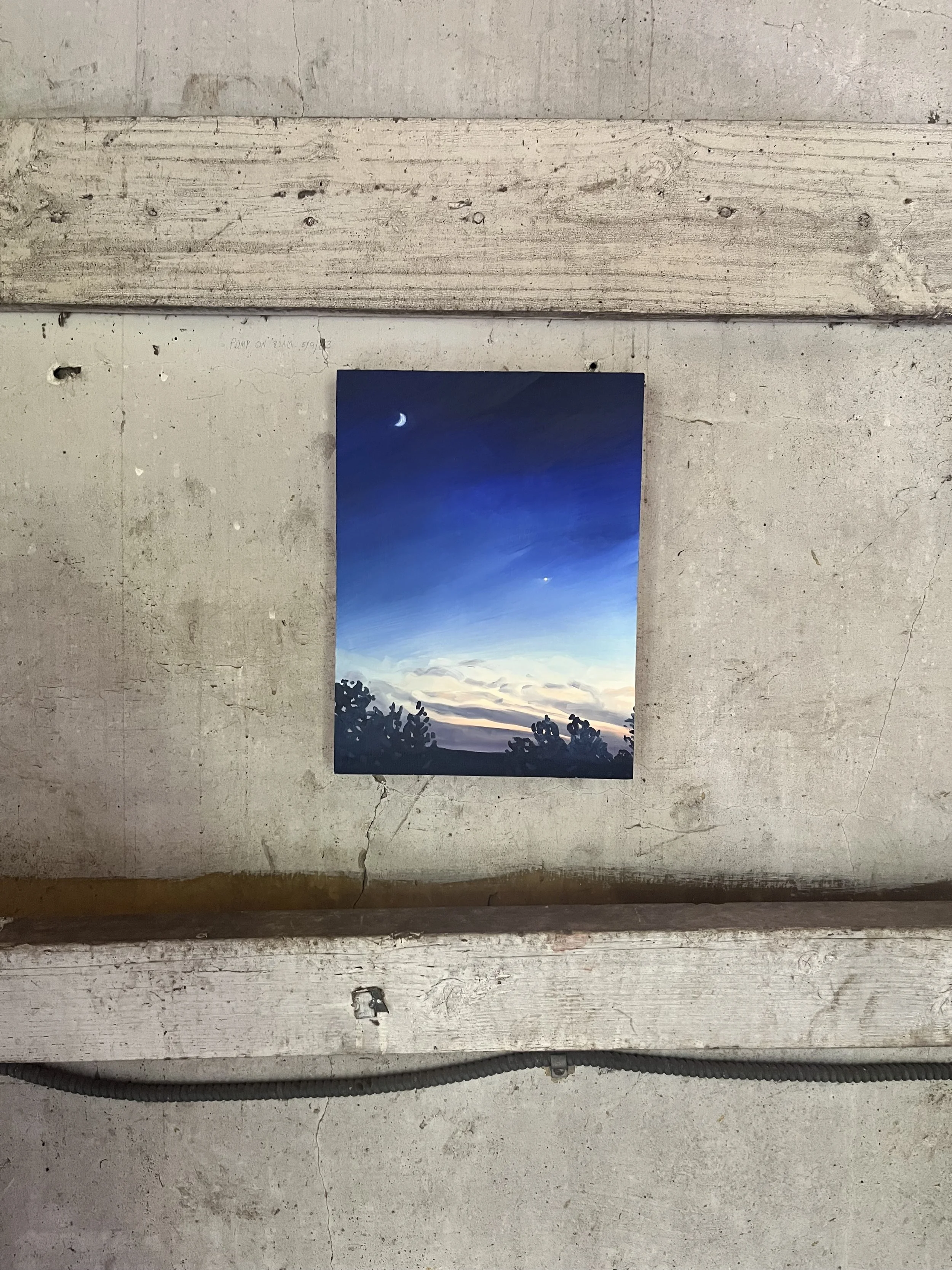Double Moon (Pond), oil on panel, 12" x 9", 2025