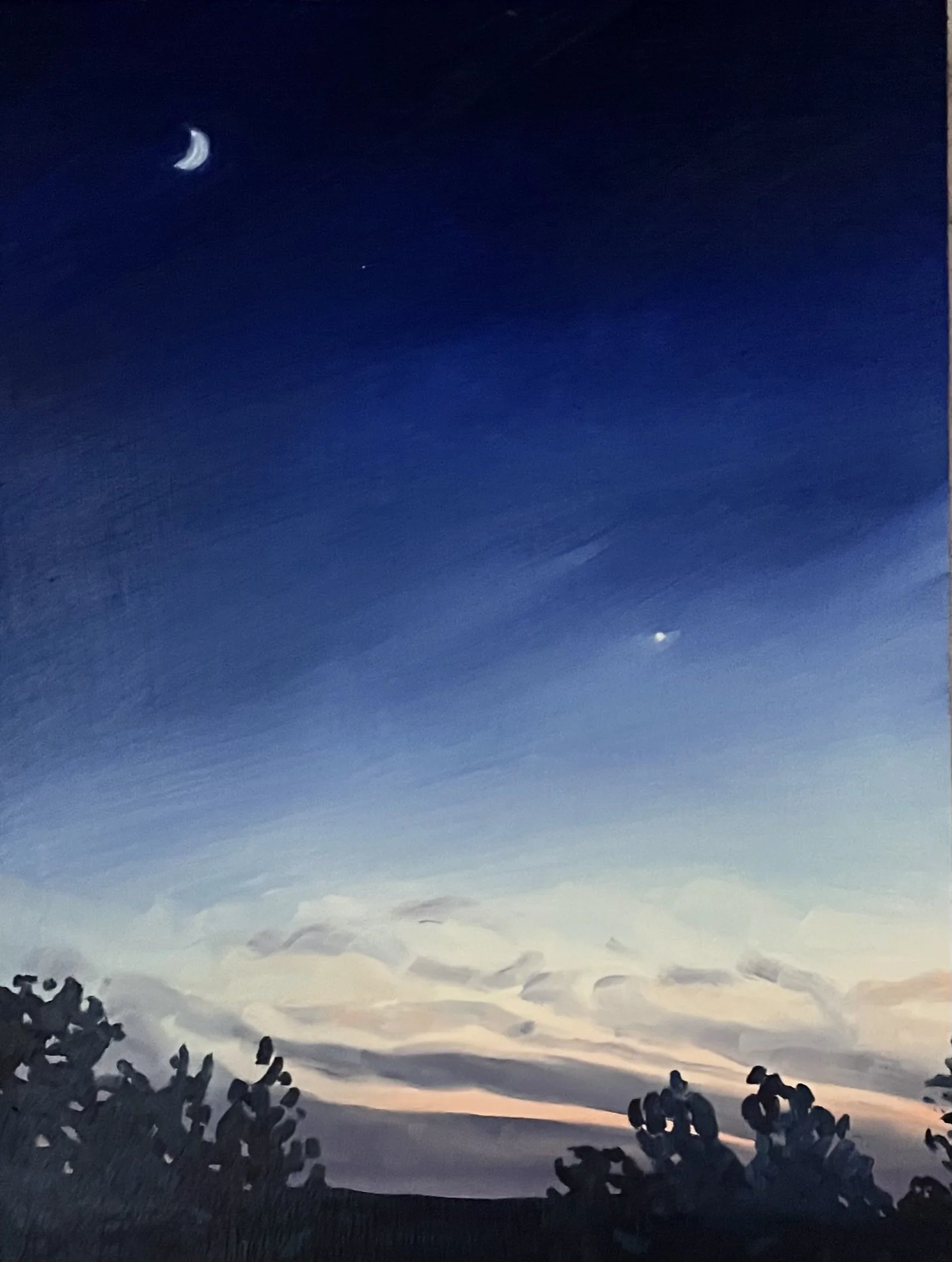 Full Moon Summer, oil on canvas, 12" x 9", 2025
